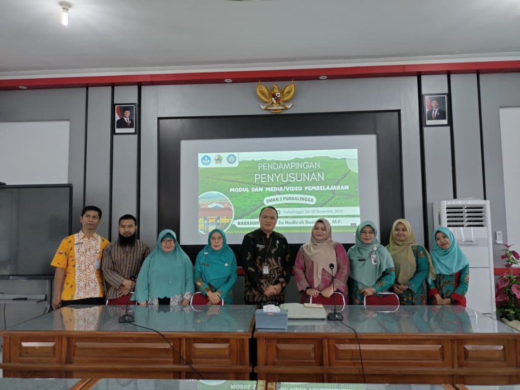 PURBALINGGA (29/11/2025) – Guna menyempurnakan perangkat ajar berbasis Deep Learning, SMKN 2 Purbalingga menyelenggarakan kegiatan “Pendampingan Penyusunan Modul dan Media/Video Pembelajaran”. Kegiatan intensif ini berlangsung selama empat hari, mulai tanggal 26 hingga 29 November 2025, dengan melibatkan tim penyusun dari kalangan guru.